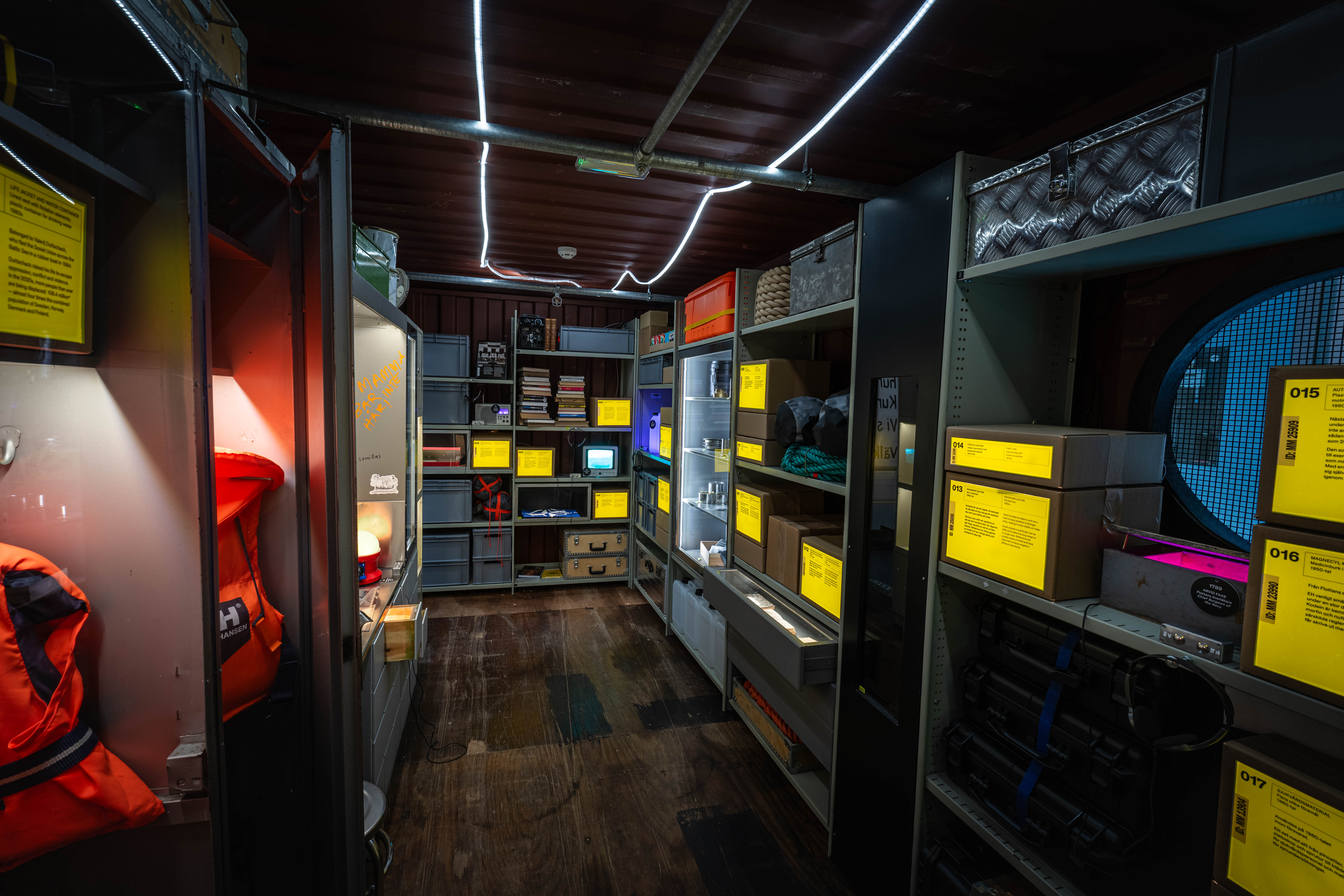 Marinmuseums nya utställning Framtidsskeppet är en tematiskt gestaltad resa genom samtid, historia och framtid. Utställningen utforskar vad säkerhet betyder i vår tid och hur vi tillsammans kan tänka kring framtidens möjligheter och utmaningar. Genom föremål, berättelser, ljud, interaktivitet och konstnärliga uttryck bjuds besökaren in till reflektion och dialog om trygghet, försvar, demokrati och mänskliga värden.